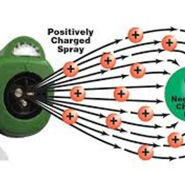 Electrostatic spray is electrically charged, allowing the appropriate sanitizers, mold preventatives and disinfectants to wrap around and evenly coat all types of surfaces for a more complete clean. As the chemical exits the electrostatic sprayer, it’s given a positive electrical charge. The droplets then become attracted to all negativ